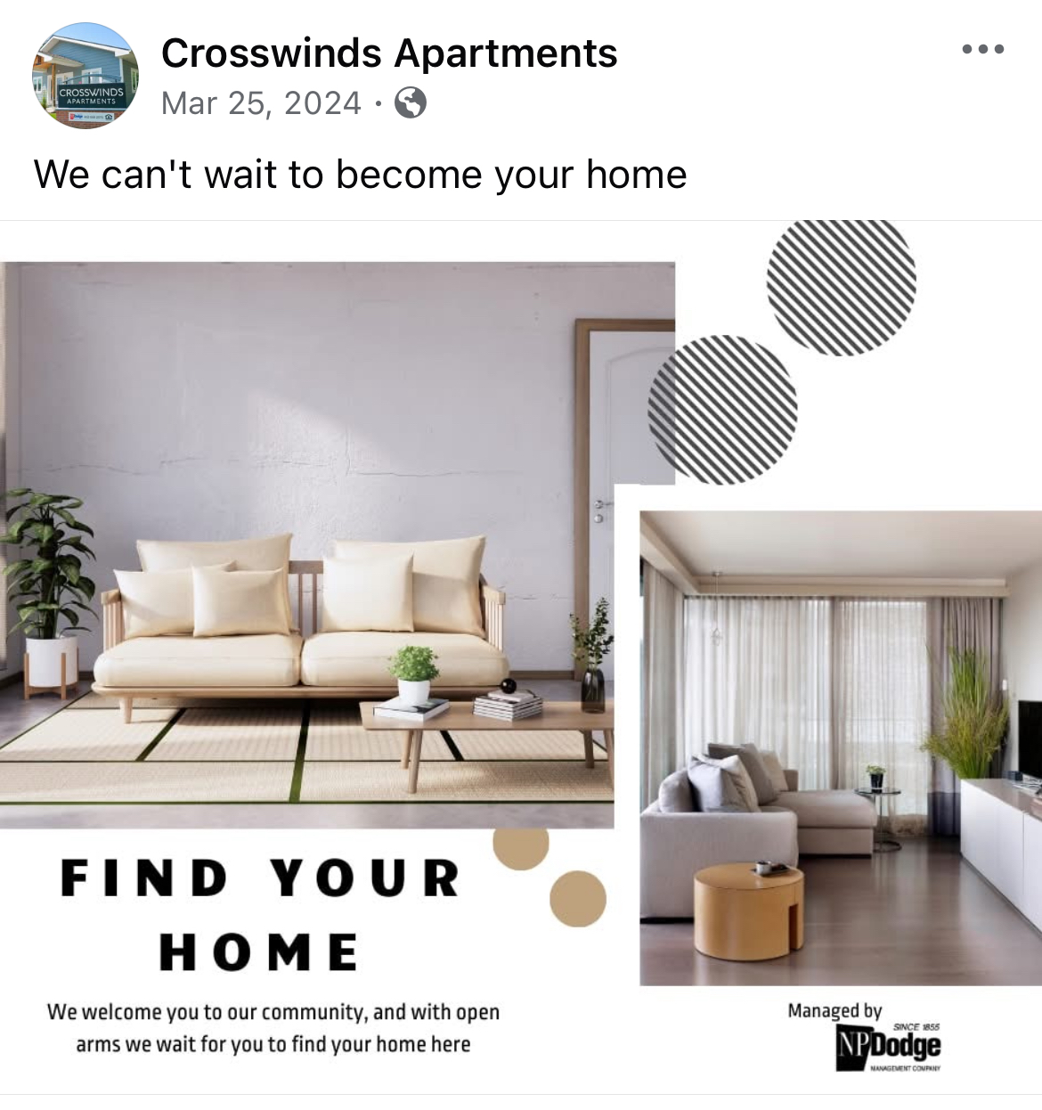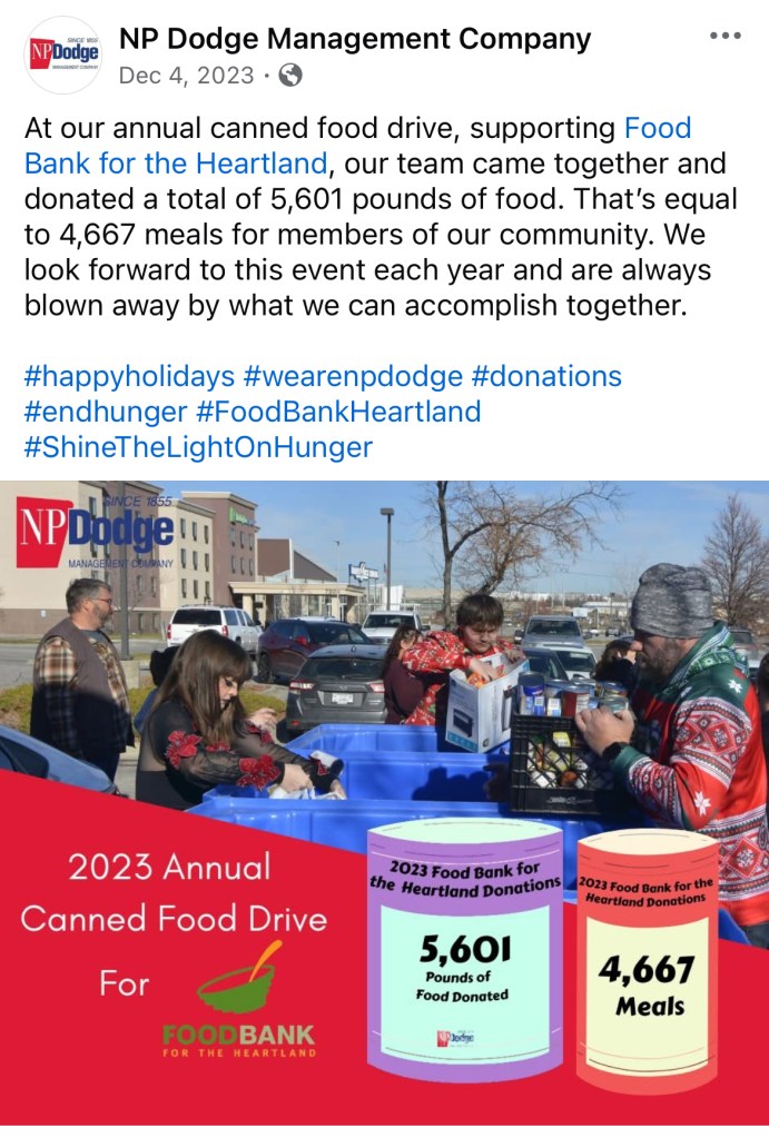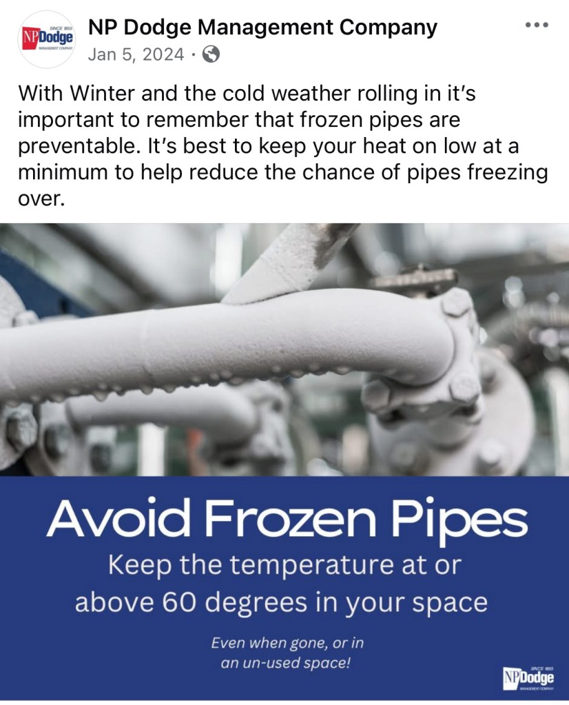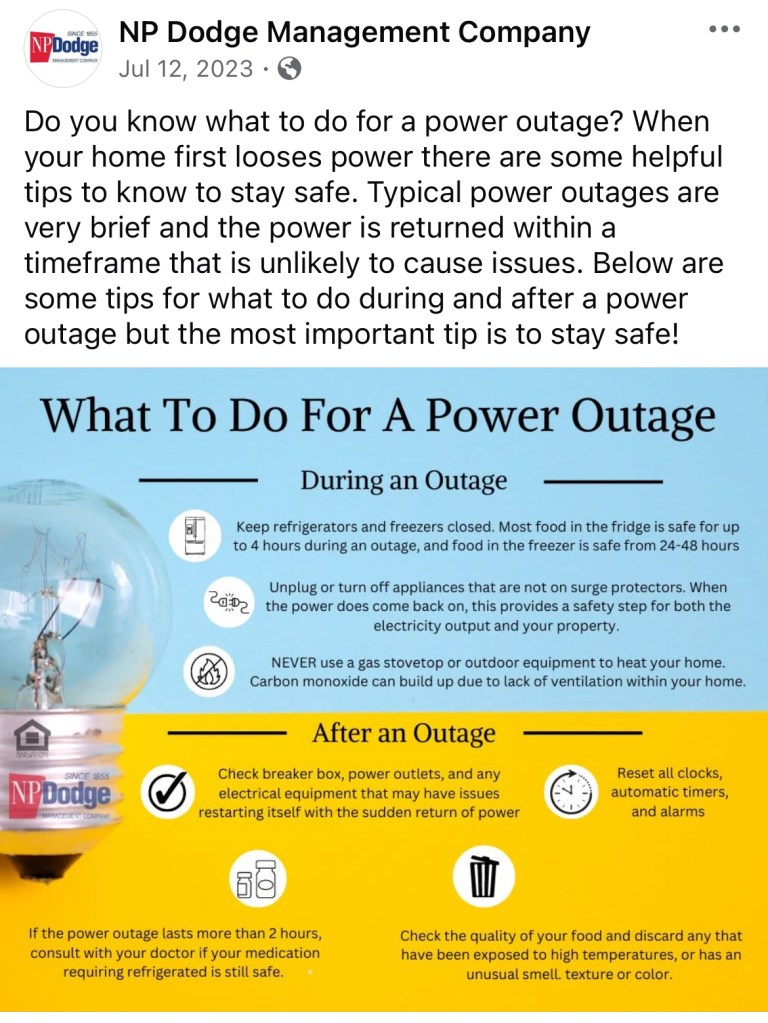 For two years I was the Social Media and Reputation Management Liaison for NP Dodge Property Management. This page has examples of work I did pulled from the Facebook pages of NP Dodge Property Management and some select apartment complexes managed by them also.